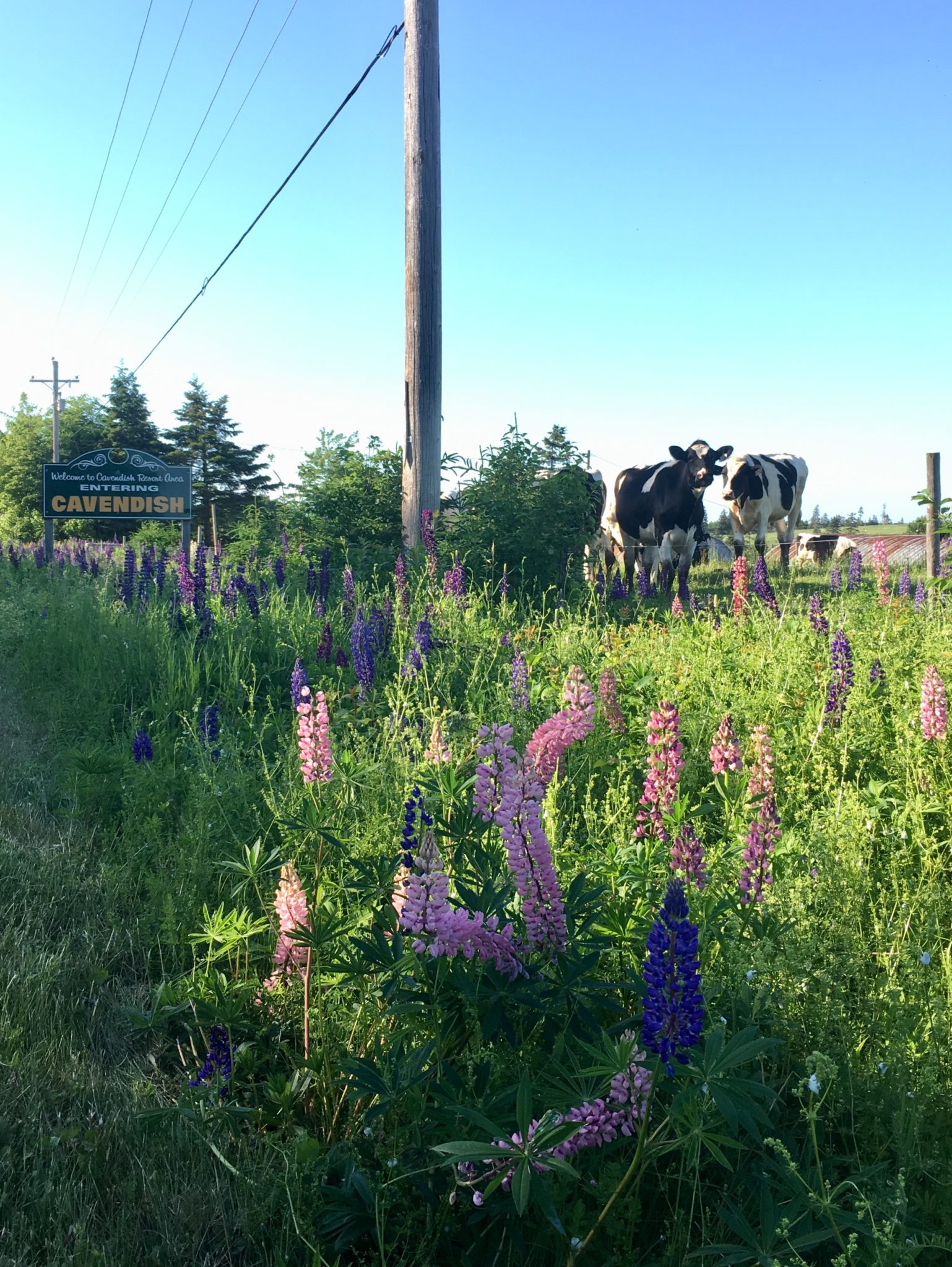 To be more exact, I should say the roads. There is more than one road that will lead you to Cavendish. The island isn’t that big, so you shouldn’t worry about getting lost, but maybe even welcome it. Welcome the beauty and the simplicity of this island. As you pass fields of green and yellow, of blue skies and the red sand beaches, rolling hills and pastures filled with purple and pink lupines, and of course, cows!